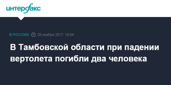 В пресс-службе УМВД по Тамбовской области "Интерфаксу" подтвердили гибель двух человек в результате падения вертолета.