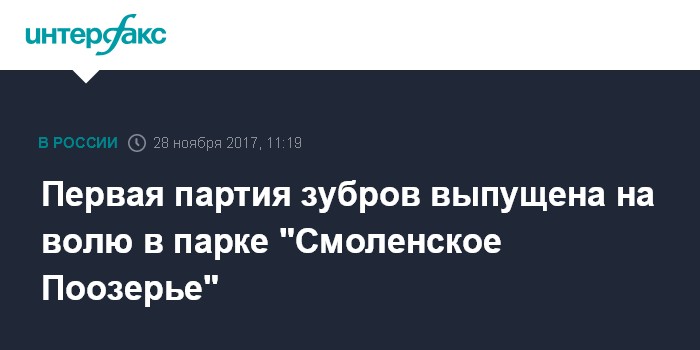 Москва. 28 ноября. INTERFAX.RU - В национальном парке "Смоленское Поозерье" из вольеров в природную среду выпустили первых 11 зубров, начав тем самым формирование вольно живущей популяции, сообщается на сайте нацпарка.