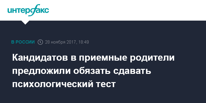 Москва. 28 ноября. INTERFAX.RU - Минобрнауки России готовит законопроект, который вводит обязательное психологическое тестирование для кандидатов в опекуны, попечители и усыновители, а также устанавливает требования к жилплощади, где должен будет жить устроенный в семью ребенок. Уведомление о разработке законопроекта было опубликовано министерством ранее во вторник на федеральном портале проектов нормативных актов.