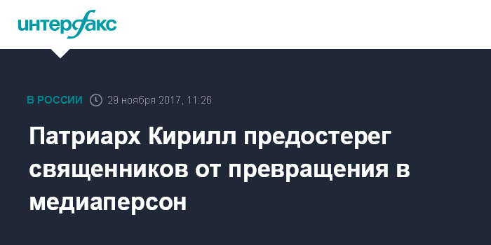 Москва. 29 ноября. INTERFAX.RU - Патриарх Московский и всея Руси Кирилл призвал священников и епископов не замещать свое служение Церкви карьерой медийных лиц и администраторов.