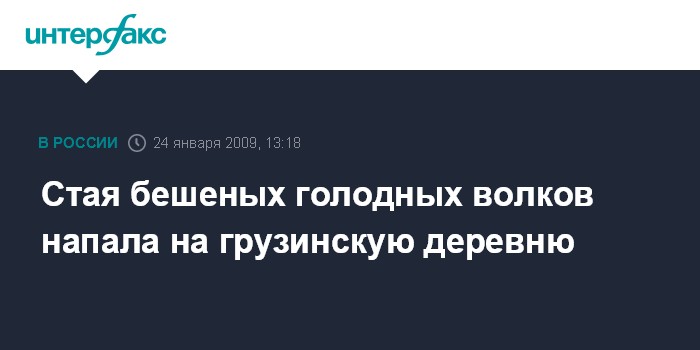 Москва. 24 января. INTERFAX.RU - Несколько человек, включая ребенка, были покусаны волками в селе Пиросмани Дедоплисцкаройского района в регионе Кахети в Грузии.