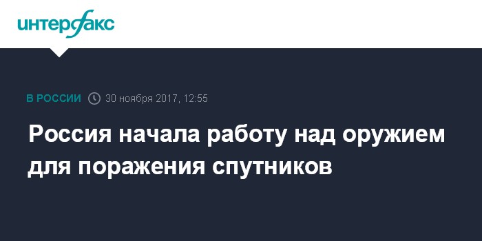 Москва. 30 ноября. INTERFAX.RU - РФ создает новейшее оружие для поражения спутников, сообщили в одном из научных институтов Минобороны РФ.