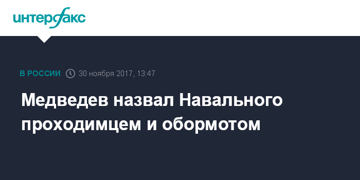 Москва. 30 ноября. INTERFAX.RU - Премьер-министр РФ Дмитрий Медведев в ходе встречи с представителями российских телеканалов отрицательно ответил на вопрос, не хочет ли он что-либо добавить к своим словам о фильме-расследовании про него, выпущенным ФБК оппозиционера Алексея Навального.