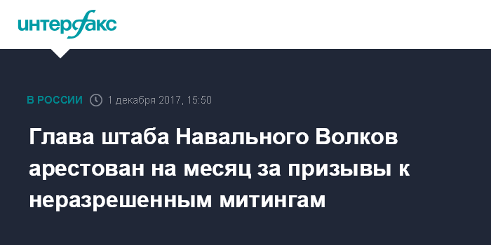 5 октября Преображенский суд Москвы признал Волкова виновным по ч.8 ст.20.2 КоАП РФ и арестовал его на 20 суток.