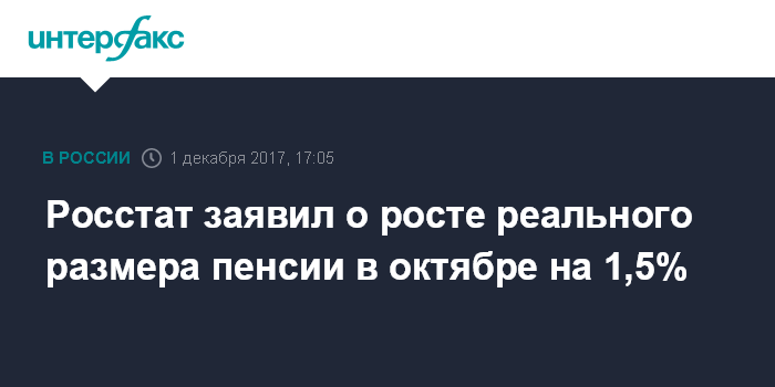 В реальном выражении (с поправкой на инфляцию) средний размер пенсий в октябре вырос на 1,5% по сравнению с октябрем прошлого года.