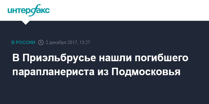 Москва. 2 декабря. INTERFAX.RU - Погибший парапланерист найден в ущелье Азау в Кабардино-Балкарии, сообщается на сайте ГУ МЧС по КБР в субботу.