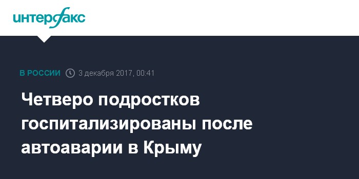 Москва. 3 декабря. INTERFAX.RU - Легковая машина наехала на группу пешеходов на севере Крыма в субботу, в больницу с травмами средней степени тяжести доставлены четыре подростка, сообщил "Интерфаксу" представитель ГИБДД региона.