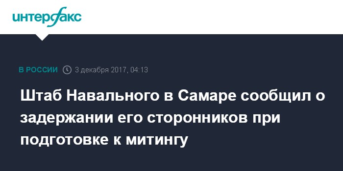Москва. 3 декабря. INTERFAX.RU - Несколько сторонников оппозиционера Алексея Навального задержаны в Самаре в воскресенье при подготовке к митингу, сообщается на официальной странице его регионального штаба во "ВКонтакте".