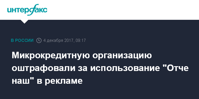 Микрокредитную организацию оштрафовали за использование "Отче наш" в рекламе