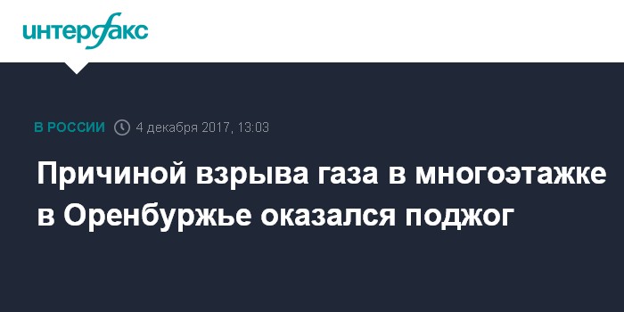Москва. 4 декабря. INTERFAX.RU - Следственные органы возбудили уголовное дело из-за поджога жилого дома в поселке Новорудный Оренбургской области, в результате которого произошел взрывгаза.
