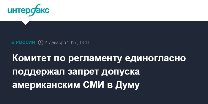 Комитет по регламенту единогласно поддержал запрет допуска американским СМИ в Думу