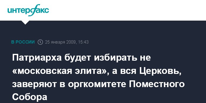 Москва. 25 января. INTERFAX.RU - В Русской православной церкви решительно не согласны с теми, кто считает, что ее предстоятеля на самом деле будет избирать "московская элита".