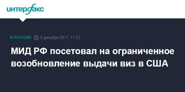 Накануне стало известно, что консульства США в Петербурге, Екатеринбурге и Владивостоке возобновят выдачу виз российским гражданам с 11 декабря. Американская сторона уточнила, что она не сможет возобновить выдачу виз в том объёме, который поддерживался "до необоснованного решения правительства Российской Федерации существенно сократить численность персонала посольства США и трех консульств".