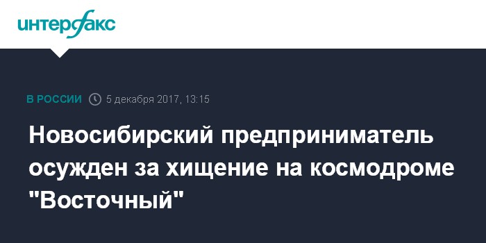 Новосибирский предприниматель осужден за хищение на космодроме "Восточный"
