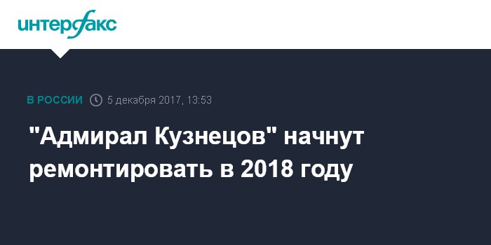 В июне заместитель главкома ВМФ России Виктор Бурсук заявлял, что ремонт и модернизация "Адмирала Кузнецова" начнется в 2018 году.