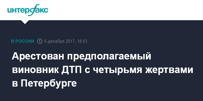 Москва. 5 декабря. INTERFAX.RU - Невский районный суд Санкт-Петербурга арестовал водителя внедорожника, участника ДТП с четырьмя погибшими, сообщила во вторник объединенная пресс-служба судов города.