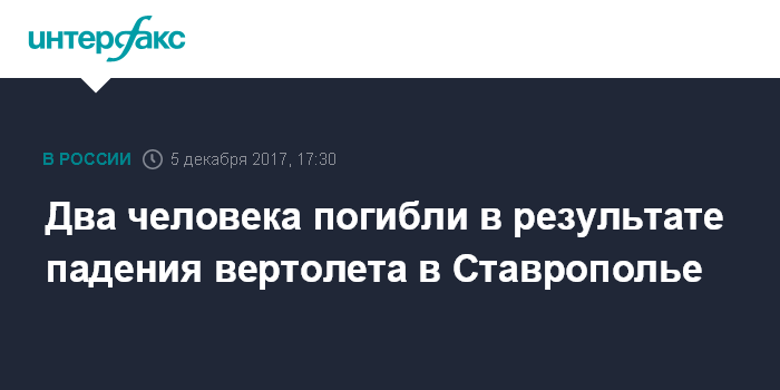 Два человека погибли в результате падения вертолета в Ставрополье
