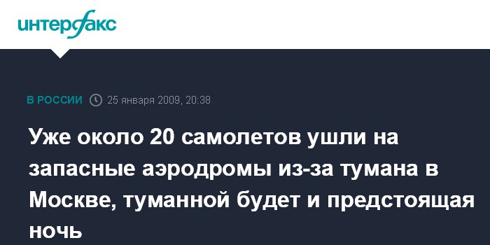 Уже около 20 самолетов ушли на запасные аэродромы из-за тумана в Москве, туманной будет и предстоящая ночь