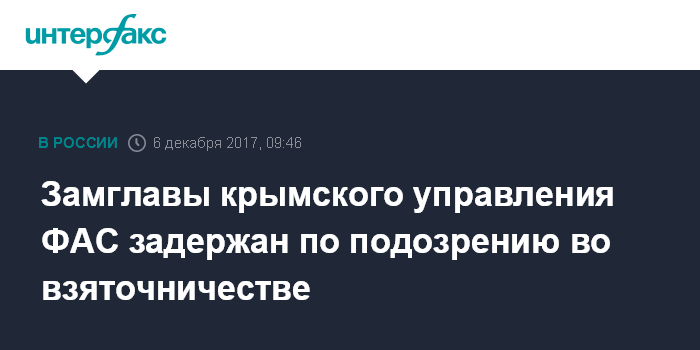 Замглавы крымского управления ФАС задержан по подозрению во взяточничестве