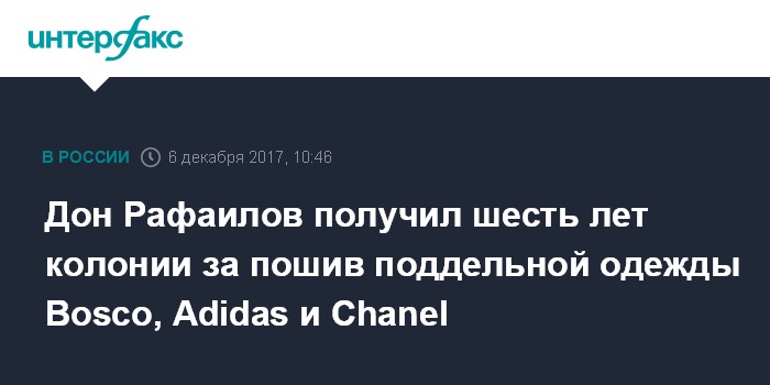 Дон Рафаилов получил шесть лет колонии за пошив поддельной одежды Bosco, Adidas и Chanel