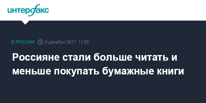 Москва. 6 декабря. INTERFAX.RU - В любви к чтению сегодня признаются 60% россиян (48% было в 2014 году), при этом число скачивающих книги из интернета за аналогичный период возросло с 18% до 35%. Такие данные приводит ВЦИОМ, который 20-21 ноября провел телефонный опрос среди 1200 респондентов.