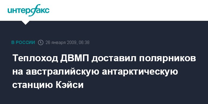 Владивосток. 26 января. ИНТЕРФАКС-ДАЛЬНИЙ ВОСТОК - Теплоход "Амдерма" ОАО "Дальневосточное морское пароходство" (ДВМП, головное предприятие транспортной группы Fesco) прибыл на австралийскую антарктическую станцию Кэйси, сообщает пресс-центр Транспортной группы Fesco в понедельник.