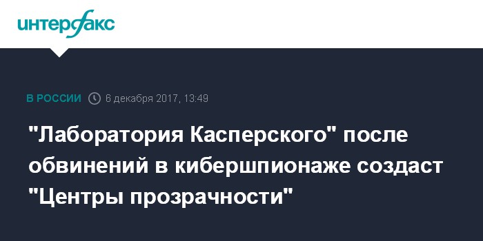 "Лаборатория Касперского" после обвинений в кибершпионаже создаст "Центры прозрачности"