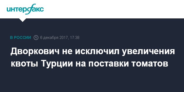 Москва. 6 декабря. INTERFAX.RU - Вице-премьер Аркадий Дворкович не исключает увеличения квоты Турции на поставки томатов в РФ.