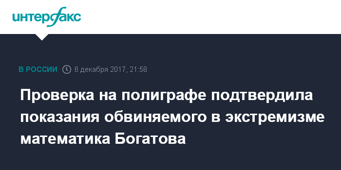 Проверка на полиграфе подтвердила показания обвиняемого в экстремизме математика Богатова
