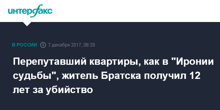 Перепутавший квартиры, как в "Иронии судьбы", житель Братска получил 12 лет за убийство