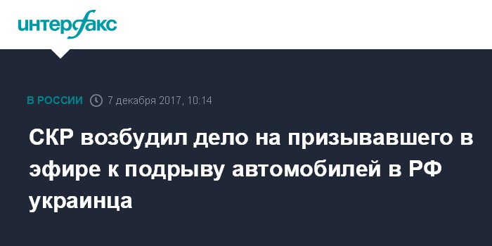 СКР возбудил дело на призывавшего в эфире к подрыву автомобилей в РФ украинца