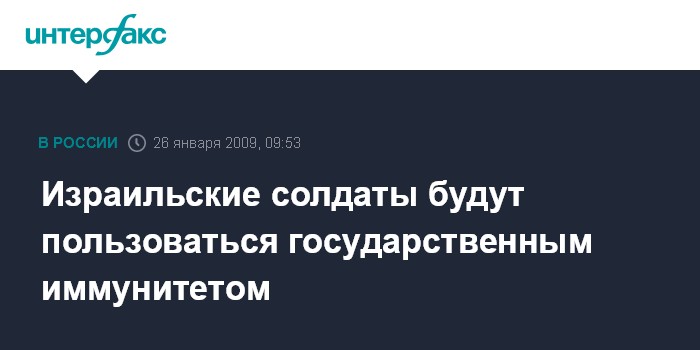Иерусалим. 26 января. INTERFAX.RU - Израильские солдаты, в случае выдвижения против них обвинений в совершении военных преступлений в период кампании в секторе Газа, будут пользоваться государственной защитой. С таким заявлением выступил премьер-министр Израиля Эхуд Ольмерт.
