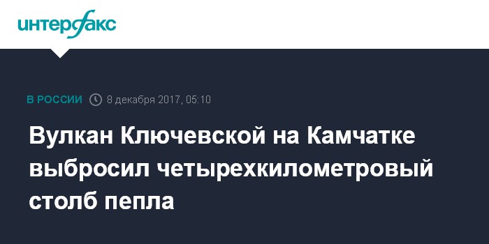 Москва. 8 декабря. INTERFAX.RU - Столб пепла высотой до 4 км километров над уровнем моря выбросил Ключевской вулкан, извергающийся на Камчатке, сообщает в пятницу Главное управление МЧС России по Камчатскому краю.