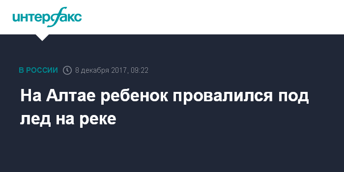 Москва. 8 декабря. INTERFAX.RU - Следователи в Республике Алтай выясняют обстоятельства гибели семилетнего ребенка, провалившегося под лед на реке Кастахта. Об этом сообщает пресс-служба Следственного управления СКР по региону.