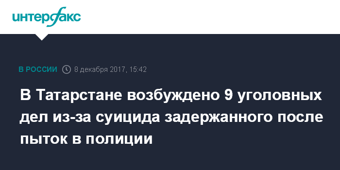 В Татарстане возбуждено 9 уголовных дел из-за суицида задержанного после пыток в полиции