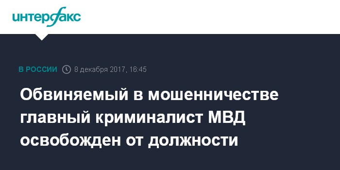 Обвиняемый в мошенничестве главный криминалист МВД освобожден от должности