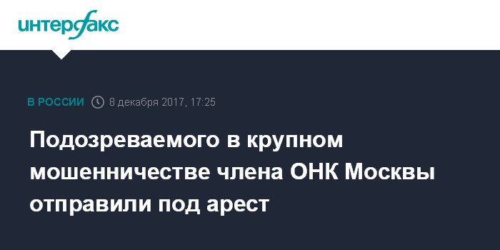 Подозреваемого в крупном мошенничестве члена ОНК Москвы отправили под арест