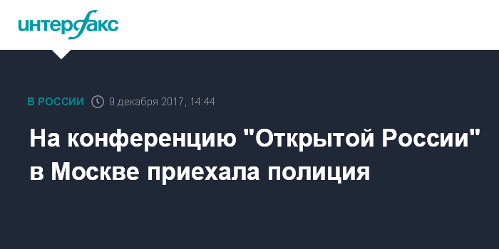 Москва. 9 декабря. INTERFAX.RU - Сотрудники правоохранительных органов прибыли на конференцию движения "Открытая Россия", которая подходит в Москве в субботу, и опрашивают представителей движения. Как передает корреспондент "Интерфакса", на мероприятие прибыли несколько десятков сотрудников полиции.