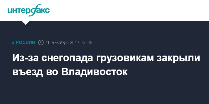 Москва. 10 декабря. INTERFAX.RU - Въезд большегрузного транспорта и его проезд по Владивостоку в воскресенье запрещены из-за снегопада, сообщила пресс-служба администрации города.