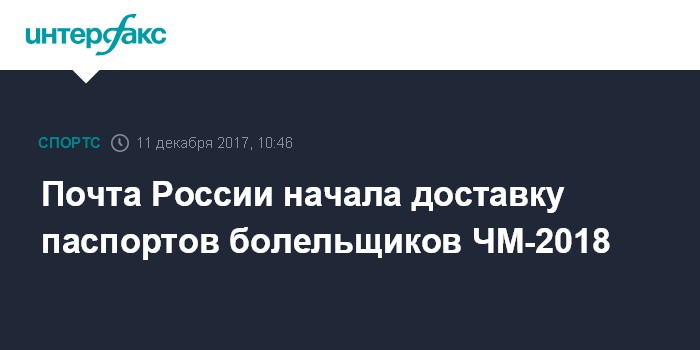 Почта России начала доставку паспортов болельщиков ЧМ-2018