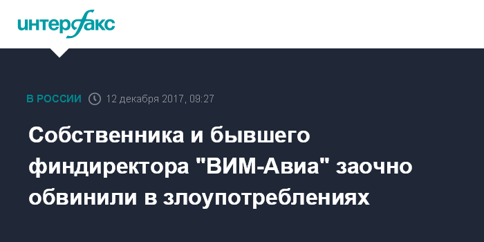 Собственника и бывшего финдиректора "ВИМ-Авиа" заочно обвинили в злоупотреблениях