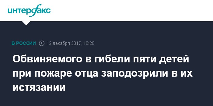 Москва. 12 декабря. INTERFAX.RU - Следователи в Новосибирской области возбудили еще одно уголовное дело в отношении Владимира Перфильева, отца пяти малолетних детей, которые погибли на пожаре, сообщает пресс-служба СК России.