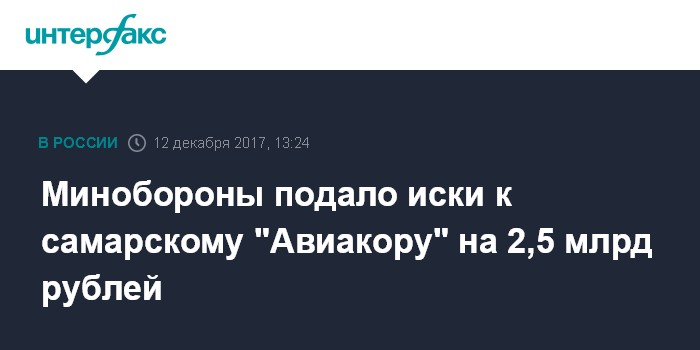 Минобороны подало иски к самарскому "Авиакору" на 2,5 млрд рублей