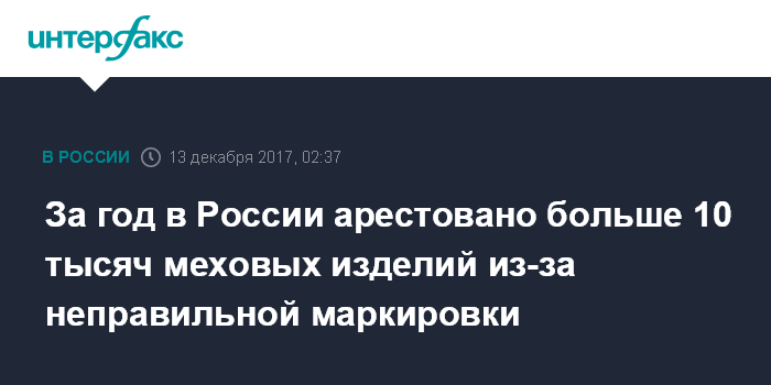 "По состоянию на декабрь текущего года специалистами Роспотребнадзора в 60 субъектах Российской Федерации арестовано в общей сложности более 10 тысяч единиц изделий из меха, находившихся в обороте с нарушением обязательных требований к маркировке. Общая стоимость продукции составила более 500 млн рублей", - говорится в сообщении федеральной службы.