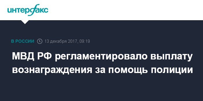 МВД РФ регламентировало выплату вознаграждения за помощь полиции
