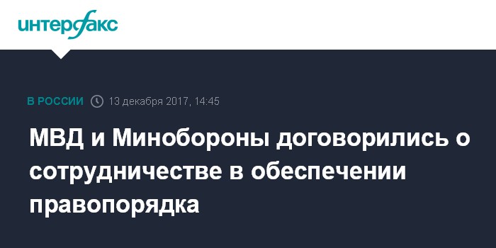 Москва. 13 декабря. INTERFAX.RU - Соглашение по вопросам обеспечения правопорядка подписали в среду глава МВД России Владимир Колокольцев и министр обороны Сергей Шойгу.