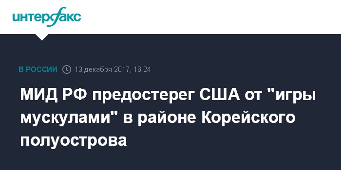 МИД РФ предостерег США от "игры мускулами" в районе Корейского полуострова