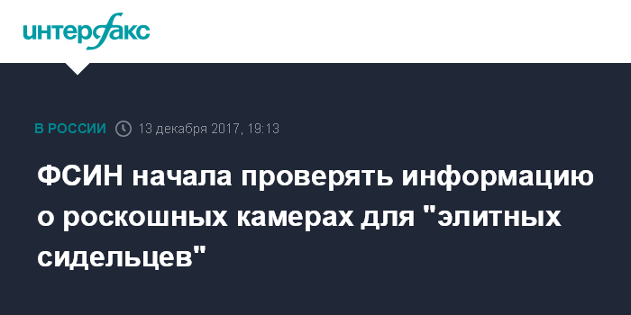 Москва. 13 декабря. INTERFAX.RU - Федеральная служба исполнения наказаний (ФСИН) начала проверку заявления правозащитников о роскошных камерах в московском следственном изоляторе "Матросская тишина" для "элитных сидельцев", сообщили в пресс-бюро ведомства.