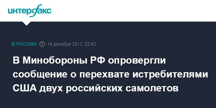 В Минобороны РФ опровергли сообщение о перехвате истребителями США двух российских самолетов