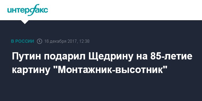 Путин подарил Щедрину на 85-летие картину "Монтажник-высотник"